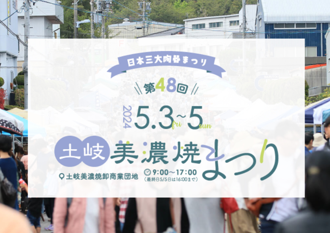 陶磁器生産量日本一の岐阜県土岐市で「土岐美濃焼まつり2024」が2024年5月3日(金・祝)~5日(日・祝)に開催。美濃焼の代表格である志野焼、織部焼、磁気製品までさまざまな陶磁器が揃います。